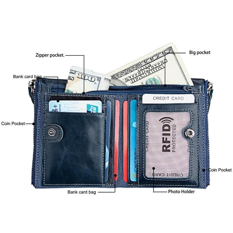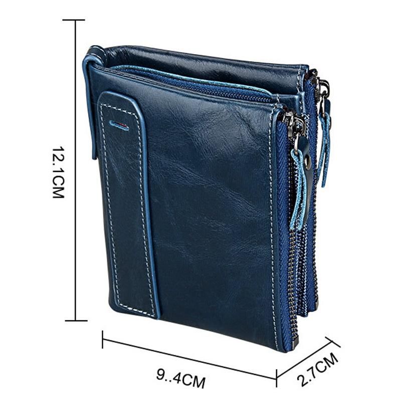 Γνήσιο δέρμα αγελάδας Crazy Horse υφή Διπλή φερμουάρ σύντομο στυλ κάτοχος κάρτας πορτοφόλι RFID μπλοκάρισμα κάρτα τσάντα προστατεύει υπόθεση για τους άνδρες, Μέγεθος: 12.1 * 9.4 * 2.7cm (μπλε)
