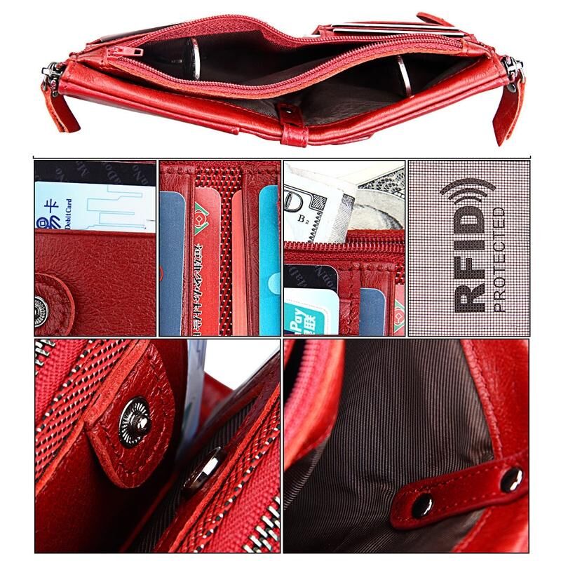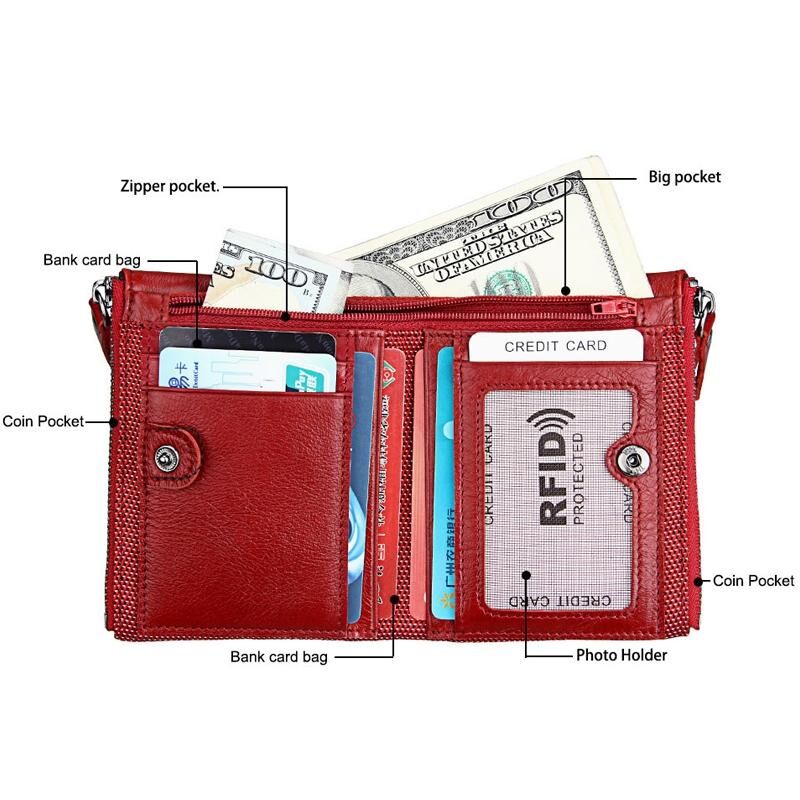 Γνήσιο δέρμα αγελάδας Crazy Horse Υφή Διπλή φερμουάρ σύντομο στυλ κάτοχος κάρτας πορτοφόλι RFID μπλοκάρισμα κάρτα τσάντα προστατεύει υπόθεση για τους άνδρες, Μέγεθος: 12.1 * 9.4 * 2.7cm (κόκκινο)