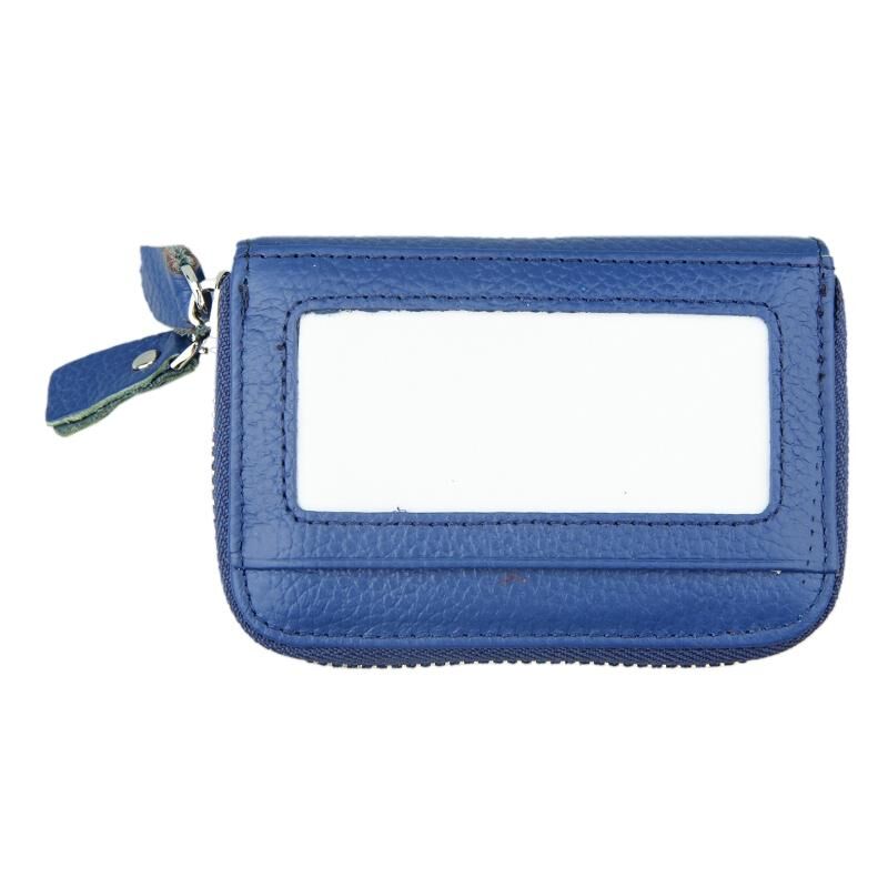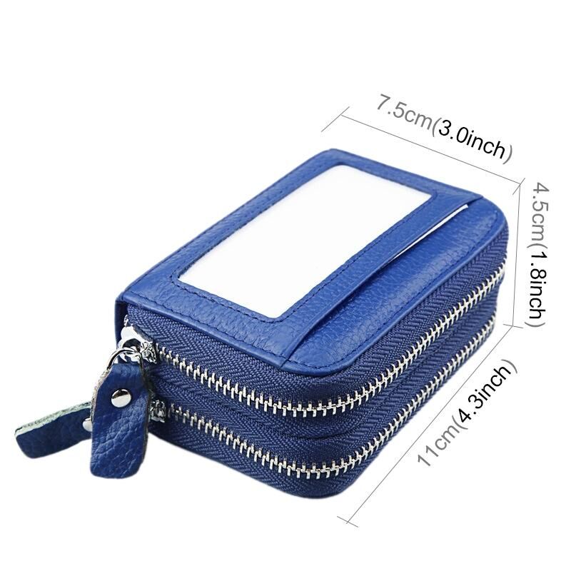 Γνήσιο δέρμα αγελάδας Διπλό στρώμα στερεό χρώμα φερμουάρ κάτοχος κάρτας πορτοφόλι RFID μπλοκάρισμα κέρμα πορτοφόλι τσάντα κάρτα τσάντα προστατευτική θήκη με 11 υποδοχές για κάρτες & θέση κέρματος, Μέγεθος: 11 * 7.5 * 4.5cm (μπλε)