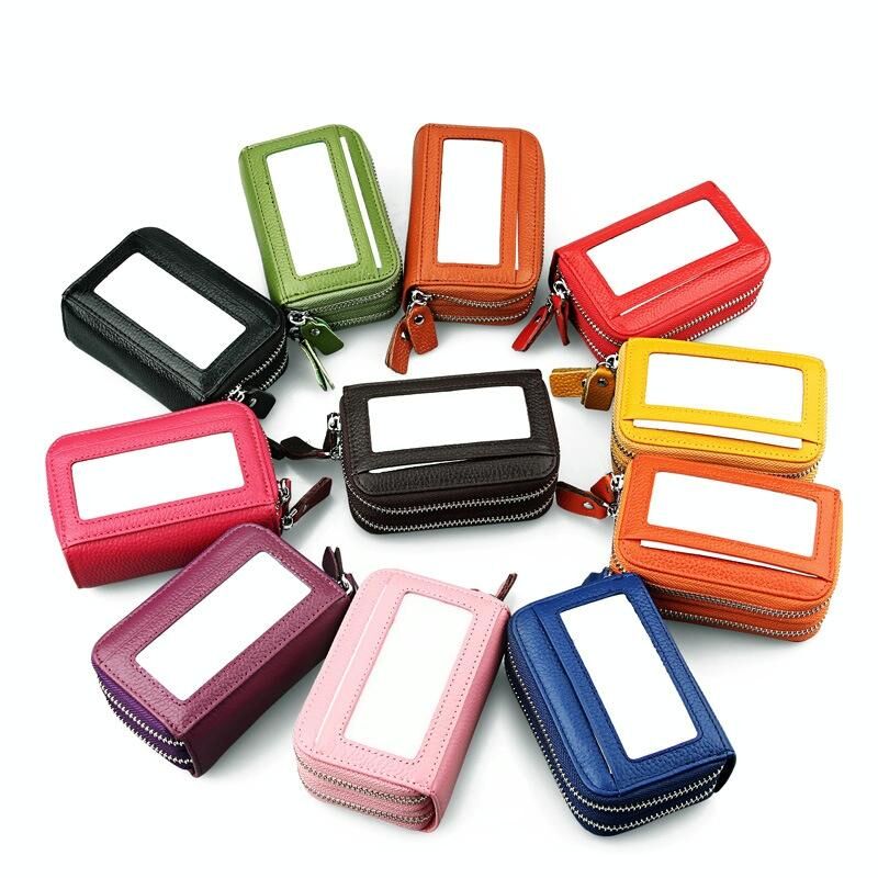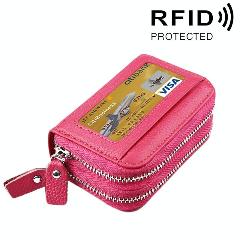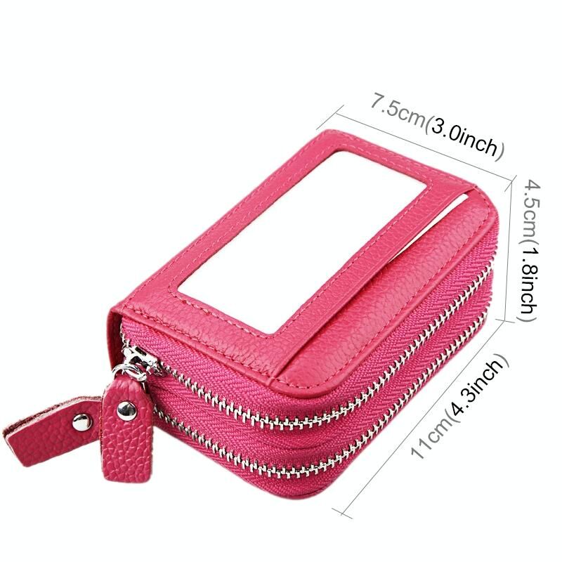 Γνήσιο δέρμα αγελάδας Διπλό στρώμα στερεό χρώμα φερμουάρ κάτοχος κάρτας πορτοφόλι RFID μπλοκάρισμα κέρμα πορτοφόλι τσάντα κάρτα τσάντα προστατευτική θήκη με 11 υποδοχές για κάρτες & θέση κέρματος, Μέγεθος: 11 * 7.5 * 4.5cm (Magenta)