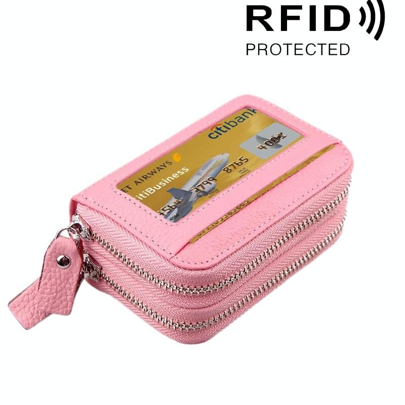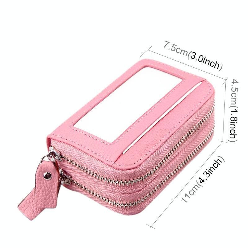 Γνήσιο δέρμα αγελάδας Διπλό στρώμα στερεό χρώμα φερμουάρ κάτοχος κάρτας πορτοφόλι RFID μπλοκάρισμα κέρμα πορτοφόλι τσάντα κάρτα τσάντα προστατευτική θήκη με 11 υποδοχές για κάρτες & θέση κέρματος, Μέγεθος: 11 * 7.5 * 4.5cm (ροζ)