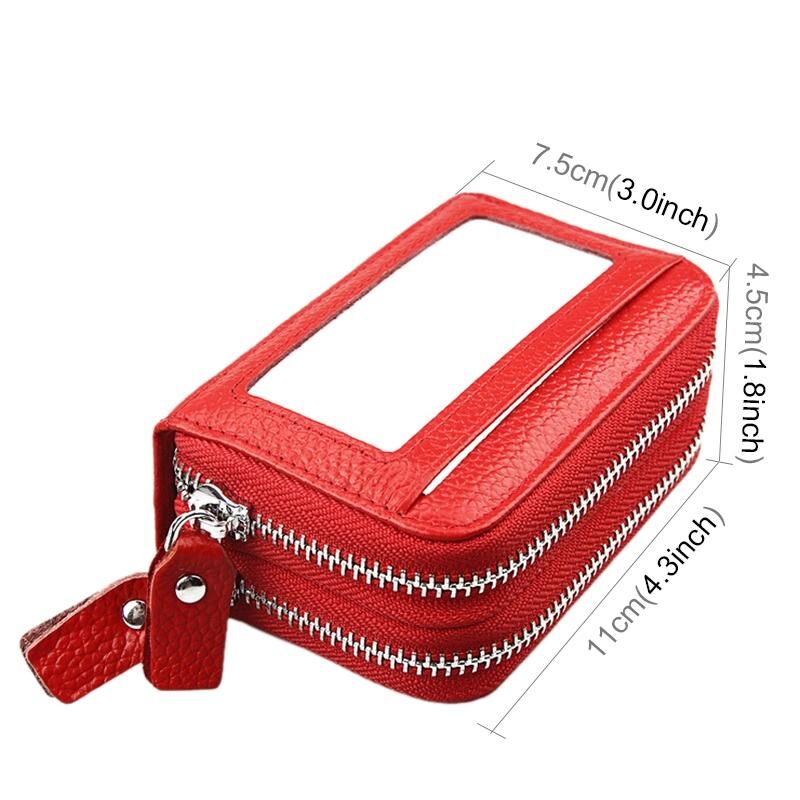 Γνήσιο δέρμα αγελάδας Διπλό στρώμα στερεό χρώμα φερμουάρ κάτοχος κάρτας πορτοφόλι RFID μπλοκάρισμα κέρμα πορτοφόλι τσάντα κάρτα τσάντα προστατευτική θήκη με 11 υποδοχές για κάρτες & θέση κέρματος, Μέγεθος: 11 * 7.5 * 4.5cm (κόκκινο)