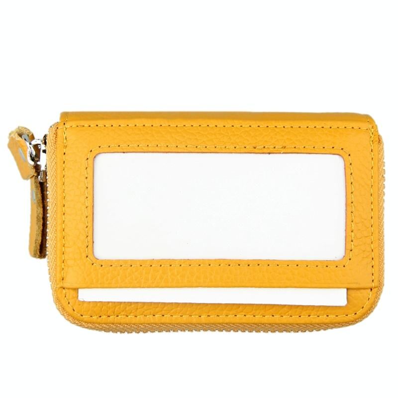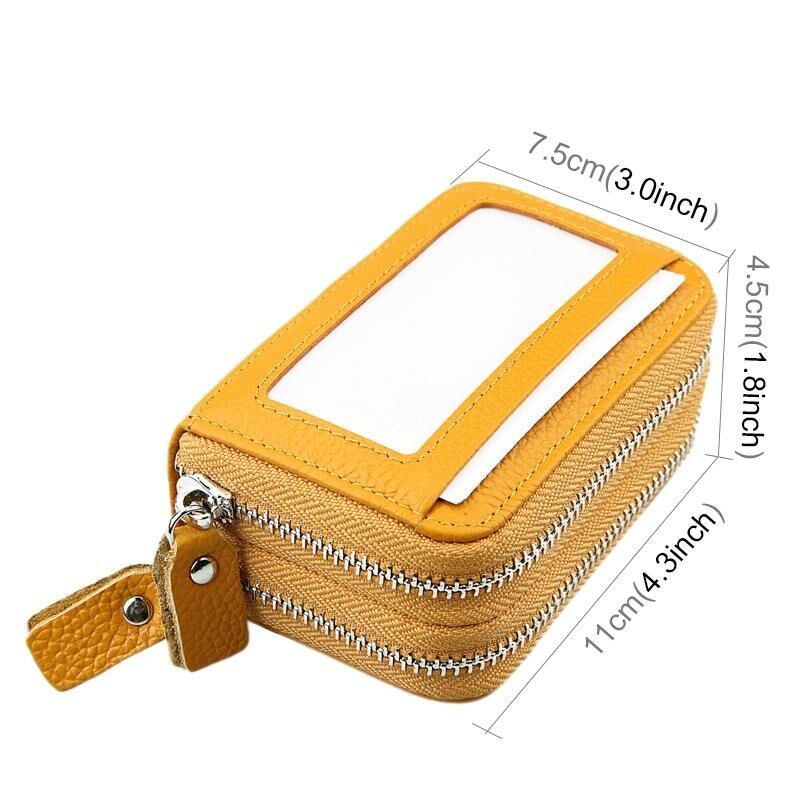 Γνήσιο δέρμα αγελάδας Διπλό στρώμα στερεό χρώμα φερμουάρ κάτοχος κάρτας πορτοφόλι RFID μπλοκάρισμα κέρμα πορτοφόλι τσάντα κάρτα τσάντα προστατευτική θήκη με 11 υποδοχές για κάρτες & θέση κέρματος, Μέγεθος: 11 * 7.5 * 4.5cm (Κίτρινο)