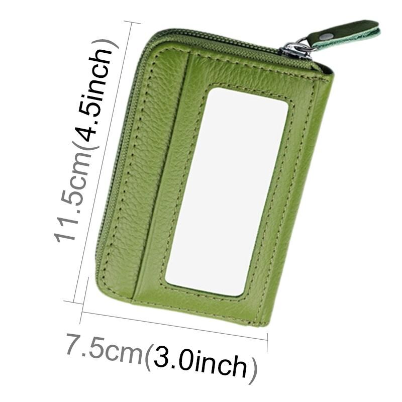Genuine Cowhide Leather Solid Color Zipper Horizontal Card Holder Wallet RFID Blocking Card Bag Protect Case with 12 Card Slots, Size: 11.5*7.5cm(Green)