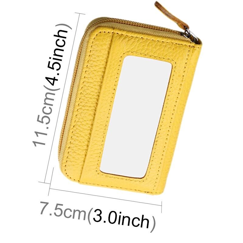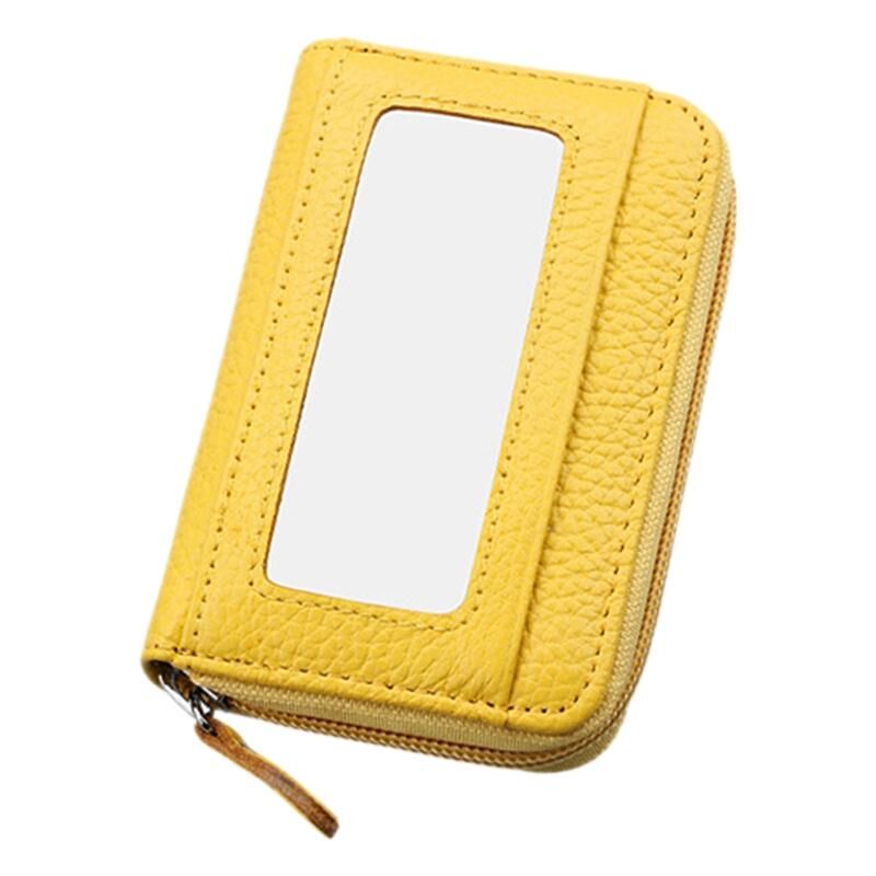 Genuine Cowhide Leather Solid Color Zipper Horizontal Card Holder Wallet RFID Blocking Card Bag Protect Case with 12 Card Slots, Size: 11.5*7.5cm(Yellow)