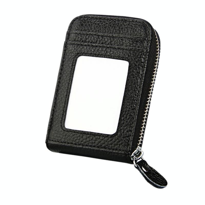 Γνήσιο δέρμα αγελάδας Αμιγές χρώμα φερμουάρ κάθετη κάρτα κάτοχος πορτοφόλι RFID μπλοκάρισμα κάρτα τσάντα προστατεύει υπόθεση με 12 υποδοχές καρτών, Μέγεθος: 11.5 * 7.5cm (Μαύρο)