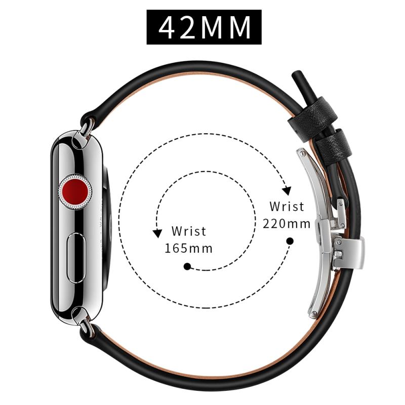 Genuine Leather + Butterfly Silver Buckle Watch Band For Apple Watch Series 7 45mm / 6 & SE & 5 & 4 44mm / 3 & 2 & 1 42mm(Black)