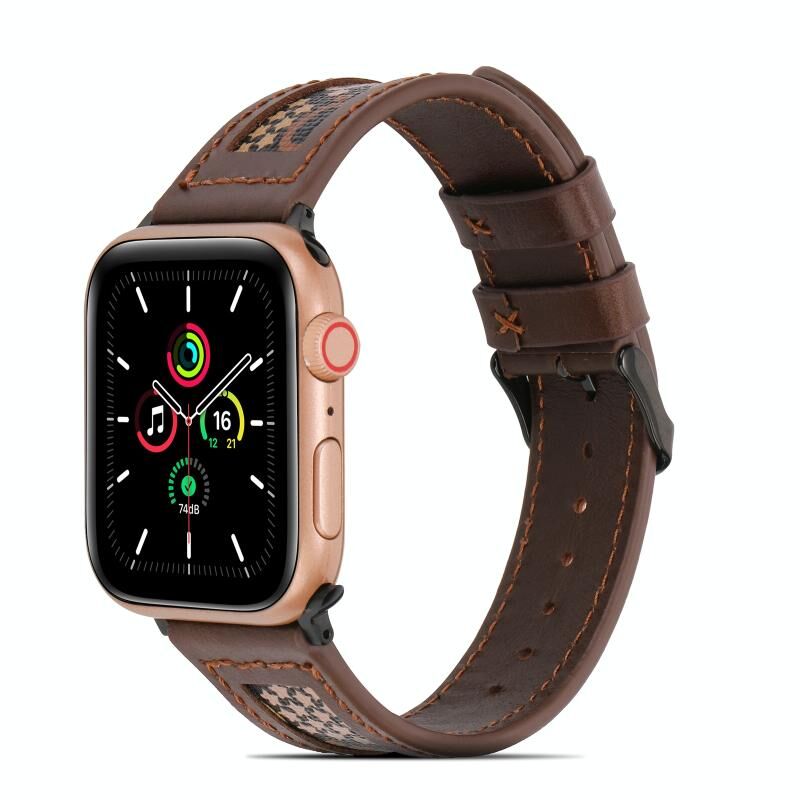 Δερμάτινο + Ζώνη Ρολογιού Πλεκτής Δομής GD για Apple Watch Series 9&8&7 41mm / SE 3&SE 2&6&SE&5&4 40mm / 3&2&1 38mm (Σκούρο καφέ)