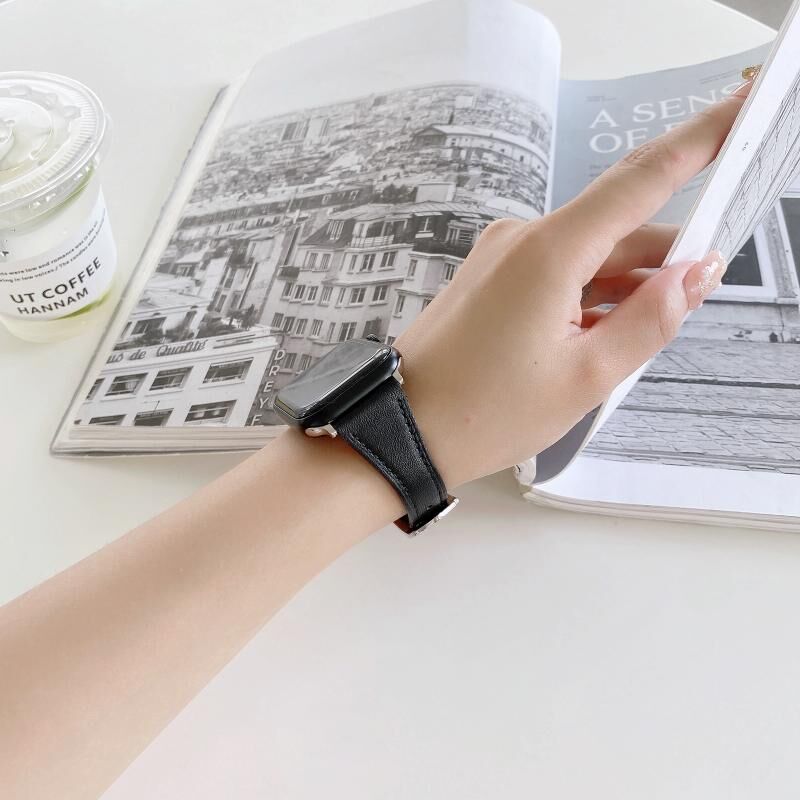 Αυθεντική Δερμάτινη Ιμάντα Ρολογιού για Apple Watch Series 9&8&7 41mm / SE 3&SE 2&6&SE&5&4 40mm / 3&2&1 38mm (Μαύρο)