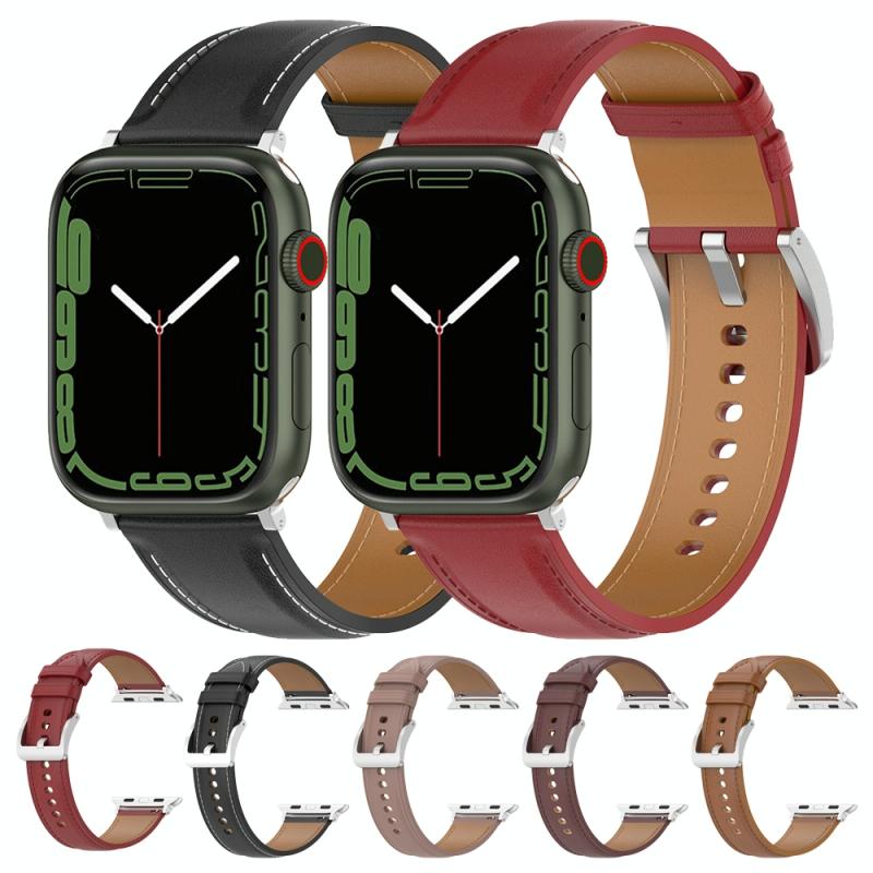 Αυθεντικό Δερμάτινο Λουρί για Apple Watch Series 9&8&7 41mm / SE 3&SE 2&6&SE&5&4 40mm / 3&2&1 38mm (Σκούρο Καφέ), Μέγεθος: Μεγάλο.