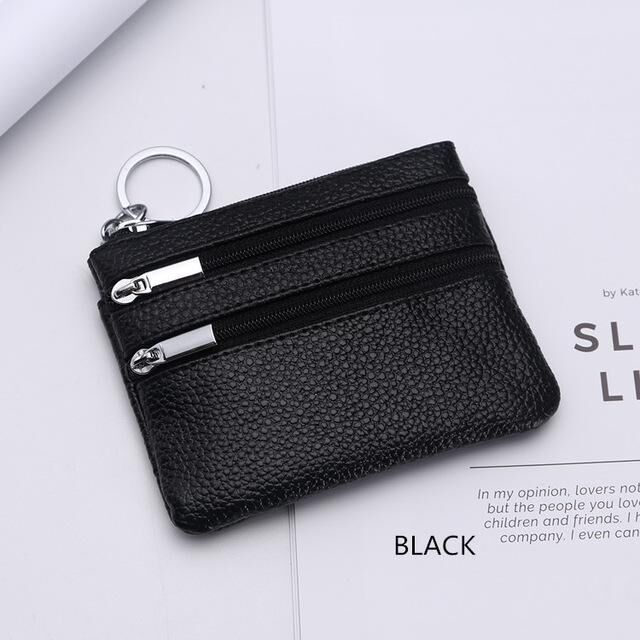 Genuine Leather Women Small Wallet Change Purses Zipper Card Holder Wallets(Black)