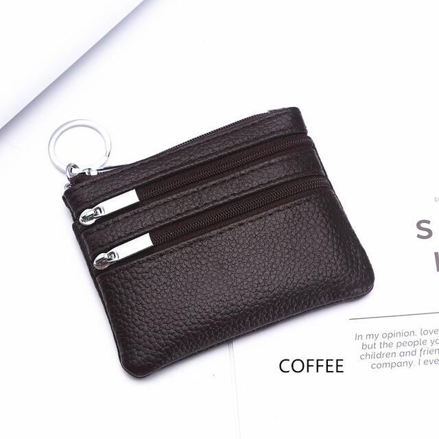 Genuine Leather Women Small Wallet Change Purses Zipper Card Holder Wallets(Coffee)