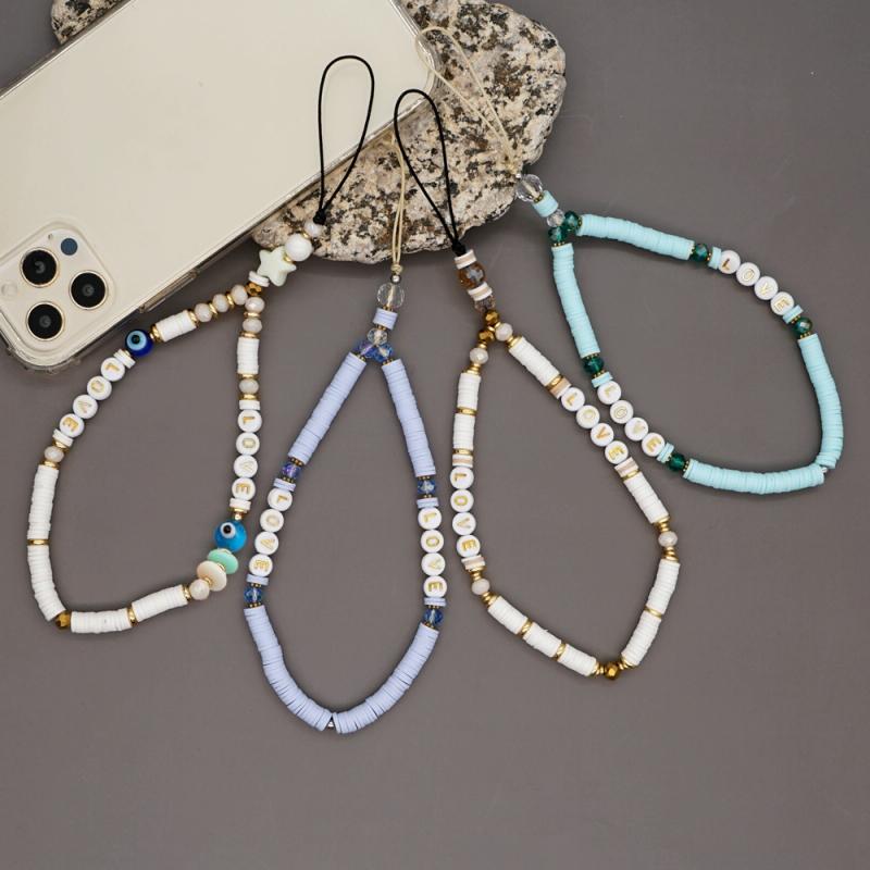Geometric Letter Soft Pottery Mobile Phone Lanyard Anti-lost Phone Chain(RT-K210065B)