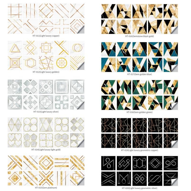 Geometric Pattern Staircase Wall Tile Sticker Kitchen Stove Water And Oil Proof Stickers, Specification: M: 15x15cm(HT-014 Light Gold)