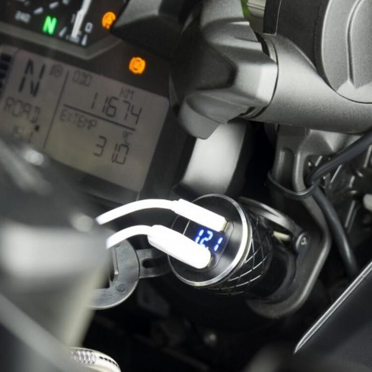 German EU Plug Special Motorcycle Elbow Charger Dual USB Voltmeter 4.2A Charger, Shell Color:Gold(Green Light)