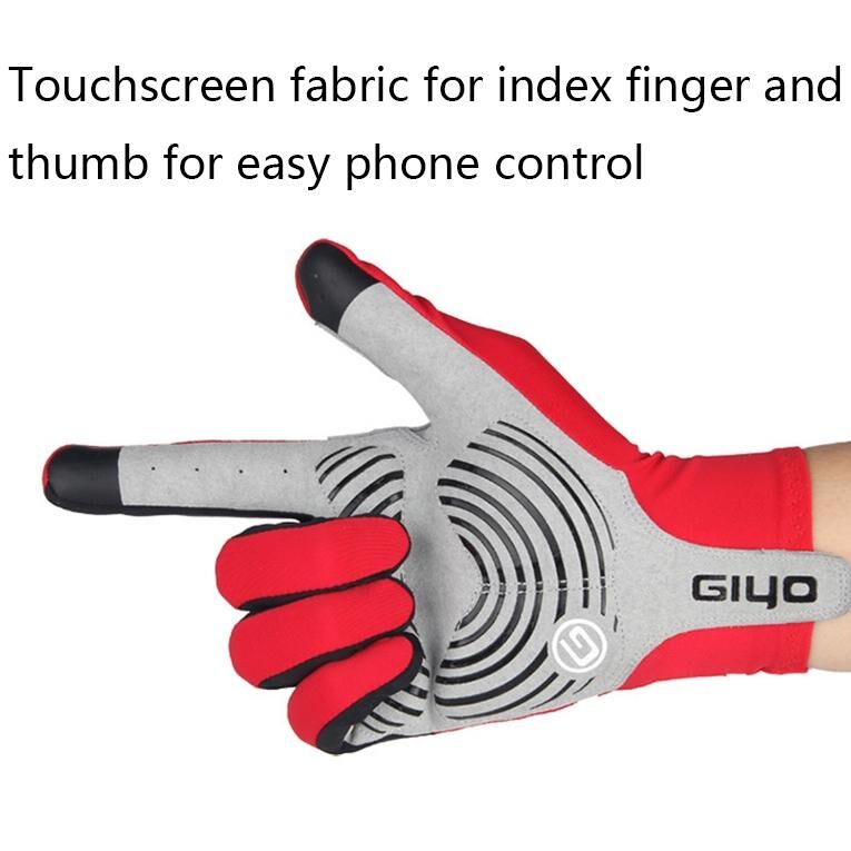 Γάντια ποδηλασίας μακρύ δαχτύλου GIYO S-02, Μέγεθος: M (Κόκκινο) (GIYO)