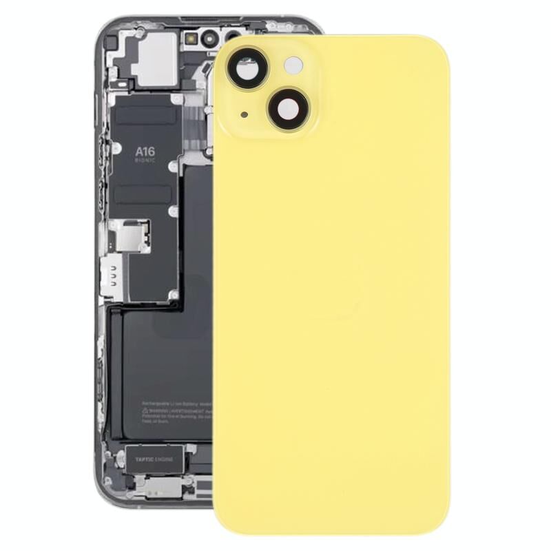 Glass Battery Back Cover with Holder for iPhone 14 Plus(Yellow)