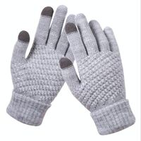 Winter Touch Screen Gloves Women Men Warm Stretch Knit Mittens Imitation Wool Thicken Full Finger Gloves(Grey)