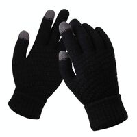 Winter Touch Screen Gloves Women Men Warm Stretch Knit Mittens Imitation Wool Thicken Full Finger Gloves(Black)