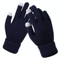 Winter Touch Screen Gloves Women Men Warm Stretch Knit Mittens Imitation Wool Thicken Full Finger Gloves(Navy Blue)