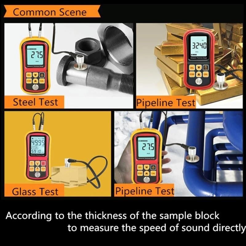 9. Sound velocity measurement: with a given thickness by a sample hardware to measure the sound velocity, which avoid the further conversion or consultation of the table