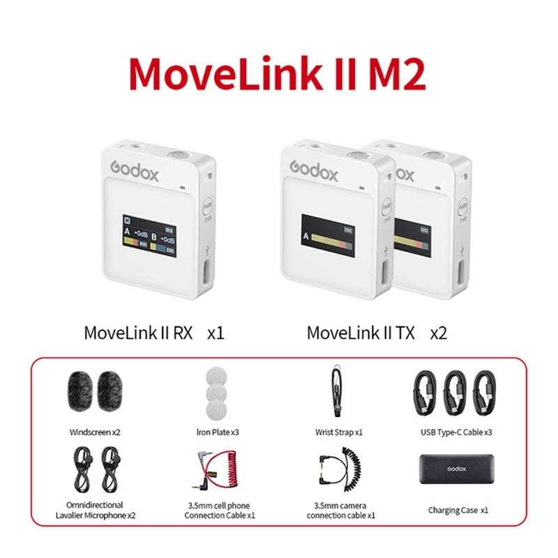 Godox MoveLink II M2 Wireless Lavalier Microphone System with 2 Transmitters and 1 Receiver for DSLR Cameras and Camcorders (White) (Godox)