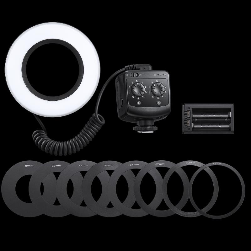 2. The left half and right half of the ring light can be used and controlled separately, can better highlight one part of the object, satisfying your different light distribution requirements.