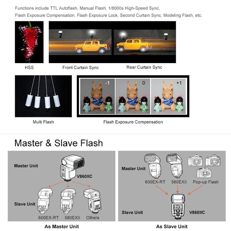 10. Synchronization mode: high speed synchronization (1 / 8000 second), first act synchronization and second act synchronization