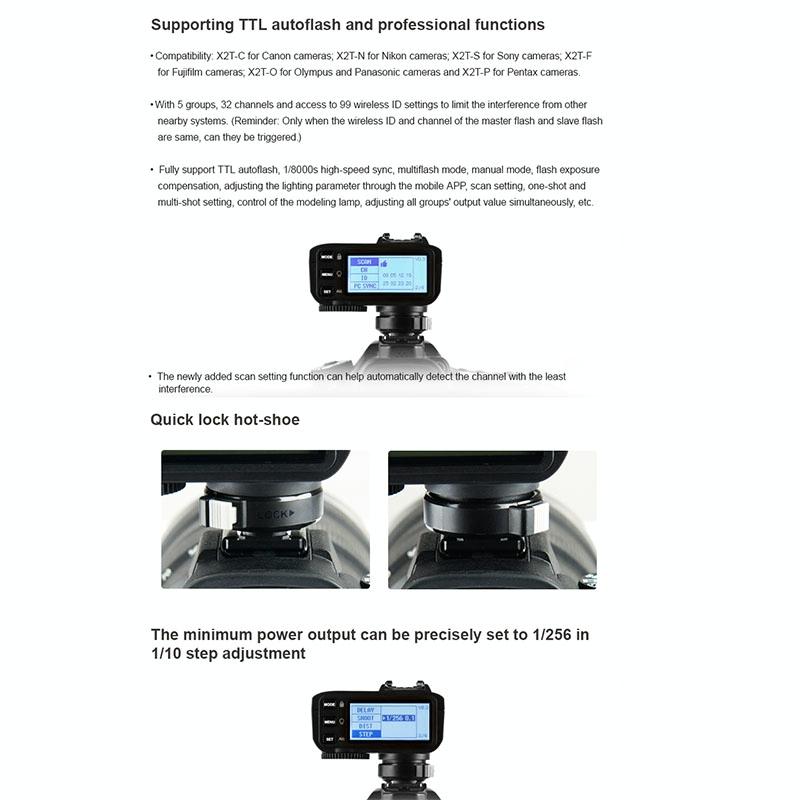 2. Compatible cameras: For Canon cameras (E-TTL II auto flash), can be used with cameras with PC sync socket