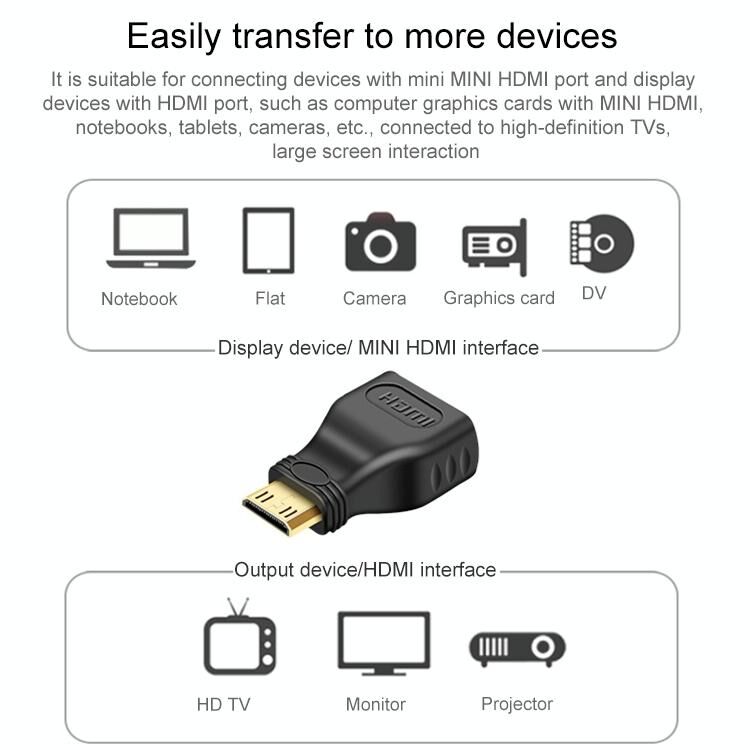 2) High performance connection between HDMI and Mini-HDMI cables.