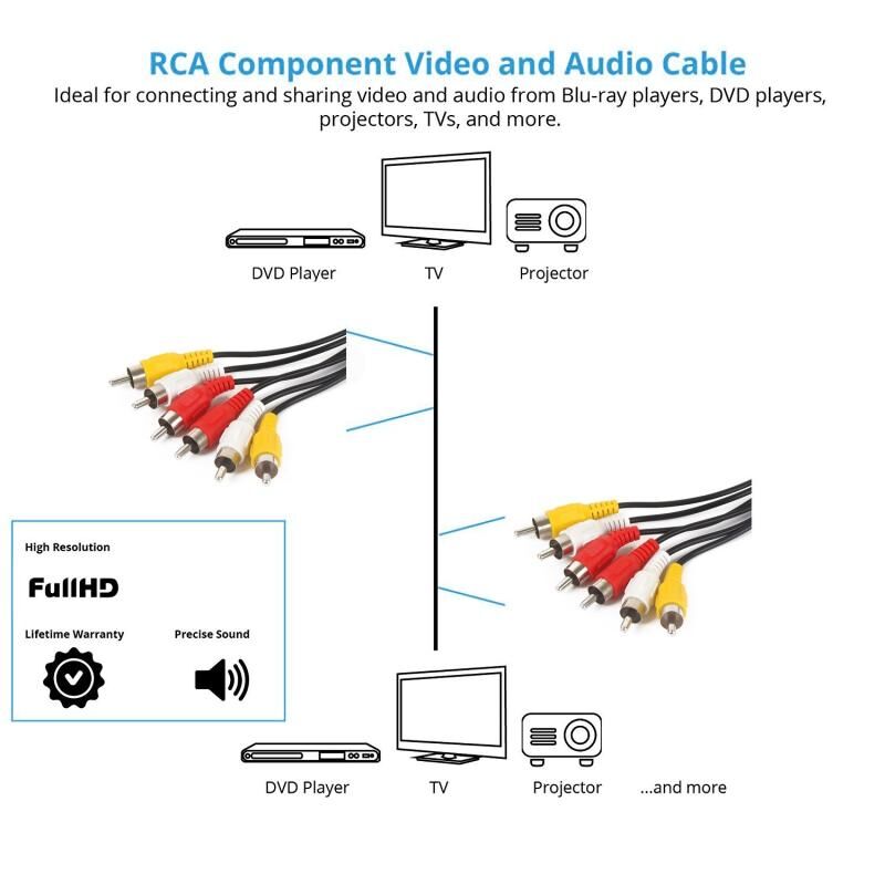 3) Συμβατό με εξοπλισμό βίντεο ή ήχου με υποδοχές τύπου RCA: DVD player/recorder, VCR, τηλεόραση, βιντεοκάμερα, Hi-Fi Stereo, δέκτης, ενισχυτής, δέκτης, δέκτης, ηχεία και πολλά άλλα!