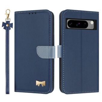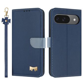 For Google Pixel 10 Pro / 9 Pro Metal Bow Leather Phone Case with Hand Strap(Dark Blue)