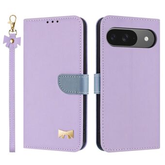 For Google Pixel 9a Metal Bow Leather Phone Case with Hand Strap(Purple)