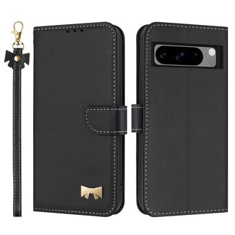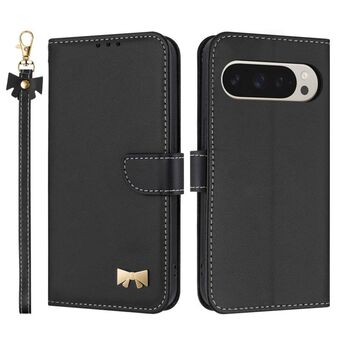 For Google Pixel 10 Pro / 9 Pro Metal Bow Leather Phone Case with Hand Strap(Black)