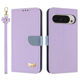 For Google Pixel 10 Pro / 9 Pro Metal Bow Leather Phone Case with Hand Strap(Purple)