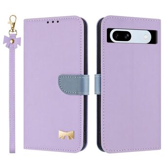 For Google Pixel 8 Metal Bow Leather Phone Case with Hand Strap(Purple)