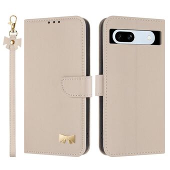 For Google Pixel 8 Metal Bow Leather Phone Case with Hand Strap(Apricot)