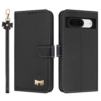 For Google Pixel 8 Metal Bow Leather Phone Case with Hand Strap(Black)