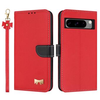 For Google Pixel 8 Metal Bow Leather Phone Case with Hand Strap(Red)