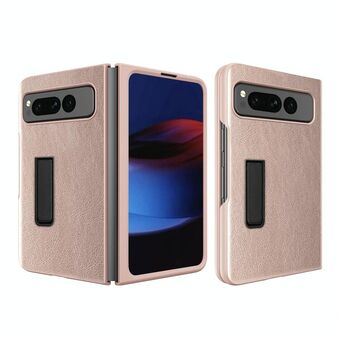 For Google Pixel Fold Litchi Pattern Electroplating Folding Phone Case with Hinge(Gold)
