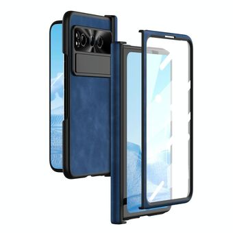 For Google Pixel Fold Integrated Napa Texture All-inclusive Phone Case with Hinge(Blue)
