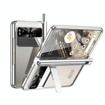 For Google Pixel Fold Integrated Electroplating Folding Phone Case with Pen Slot & Hinge(Silver)