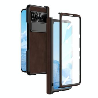 For Google Pixel Fold Integrated Napa Texture All-inclusive Phone Case with Hinge(Coffee)
