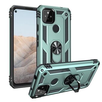For Google Pixel 5a 5G Shockproof TPU + PC Protective Case with 360 Degree Rotating Holder(Dark Green)