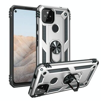 For Google Pixel 5a 5G Shockproof TPU + PC Protective Case with 360 Degree Rotating Holder(Silver)
