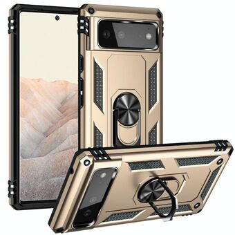 For Google Pixel 6 Shockproof TPU + PC Protective Case with 360 Degree Rotating Holder(Gold)