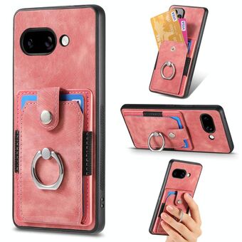 For Google Pixel 9a Retro Skin-feel Ring Card Wallet Phone Case(Pink)
