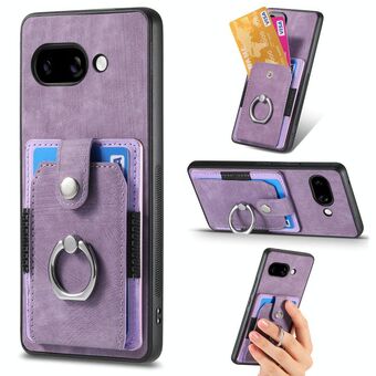 For Google Pixel 9a Retro Skin-feel Ring Card Wallet Phone Case(Purple)