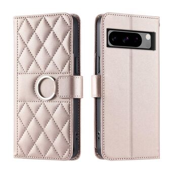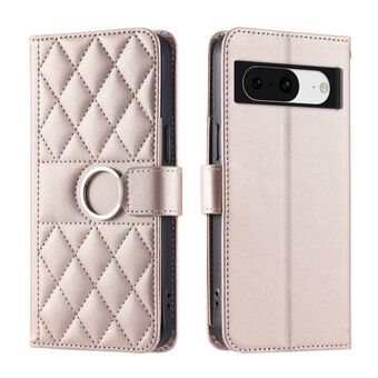 For Google Pixel 8 Ring Buckle Rhombic Leather Phone Case(Rose Gold)