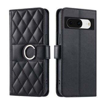 For Google Pixel 8 Ring Buckle Rhombic Leather Phone Case(Black)